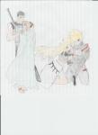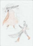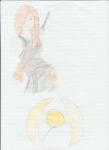 2nd one is his idea of Selina (Tanis' sister, one of the assassins from AA1 in case you don't remember). Her hair was meant to be brown but his brown pencil came out ginger. But then, it doesn't look to bad on her anyway so meh LOL You can also assume that this is gonna be similar to his impression of Fariel, since they are (for reasons that were never explained) very similar in appearance. Hey, maybe Fariel is 1/4 elf? That would explain her above average dexterity, and Tanis' protectiveness towards her...