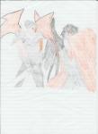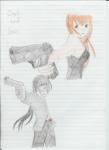 I've been uber bored and still doing my little drawings also forums seeming pretty dead, so I did more drawings, did one titled broken couple, basically its a drawing of Neji and Melina, Zell and Alia and Keiji and Tsunami, Keiji and Tsunami pic is seperate cause origanally did one next to Zell and Alia but turned out **** so tour it off and did a different pic seperate.
