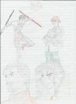 Ok thot i better post up the origanal pictures, (the one's i traced) for the first lot, which are mainly of Keiji u can see I traced them completely adding an arm band. But the sketches after them I got abit braver what i did was Sketch the pose and outline of the characters and make many adjustments, so they looked far less like the version I traced and more like our characters, however still all rights reserved to origanal owners and all that.