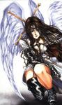1st one is two pics of Shuruk'jaar (in his "normal" form). The pic has been changed in places for dramatic effect, for example in both he has bat wings rather than feathered ones to highlight the connection with his possessing demon. Also he doesn't wear a sword or cloak (cloaks get in the way of wings LOL) but th sword is cool and the cloak is to hide the scars on his face (right hand pic). I quite like it - other than a bit more armour on the arms and legs that's pretty much what I had in mind for him.